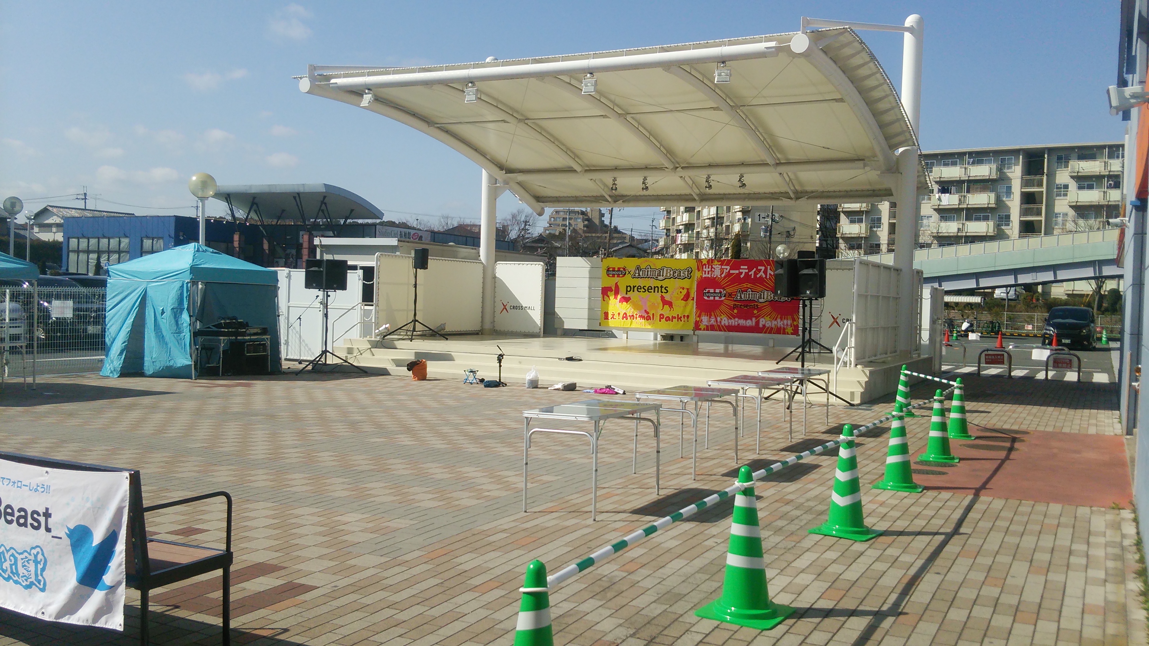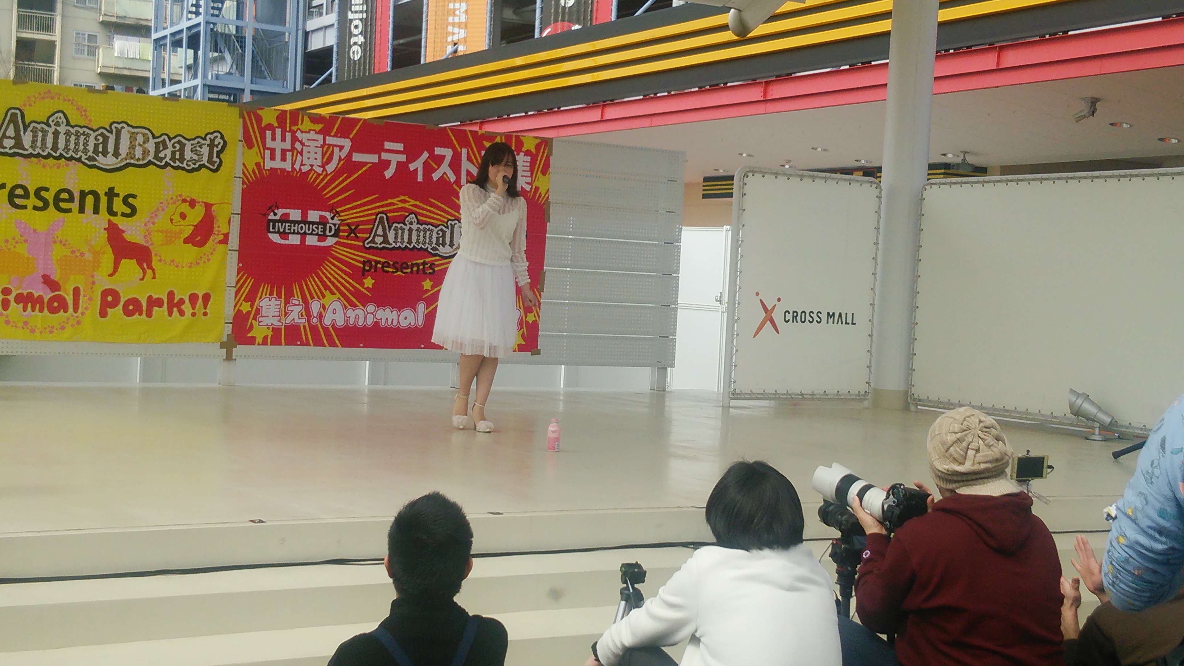西天満で2店舗のライブハウスを運営する株式会社DuaLarsが本腰を入れて辛抱強く涵養し続けた結果、ここ1年ほどの成長ぶりが著しい、動物がテーマのアイドルユニット「AnimalBeast」。(Twitter・・・@_animalbeast_)今回はそのAnimalBeastがメインを努める、堺市内にある商業施設「クロスモール」でのイベントに露払いとして出演させていただく事に。
